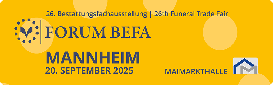 Die Ausgabe der Forum BEFA ist die deutschlandweit die bedeutendste Fachmesse der Bestattungsbranche, die dieses Jahr am 20. September in der Mannheimer Maimarkthalle stattfindet.